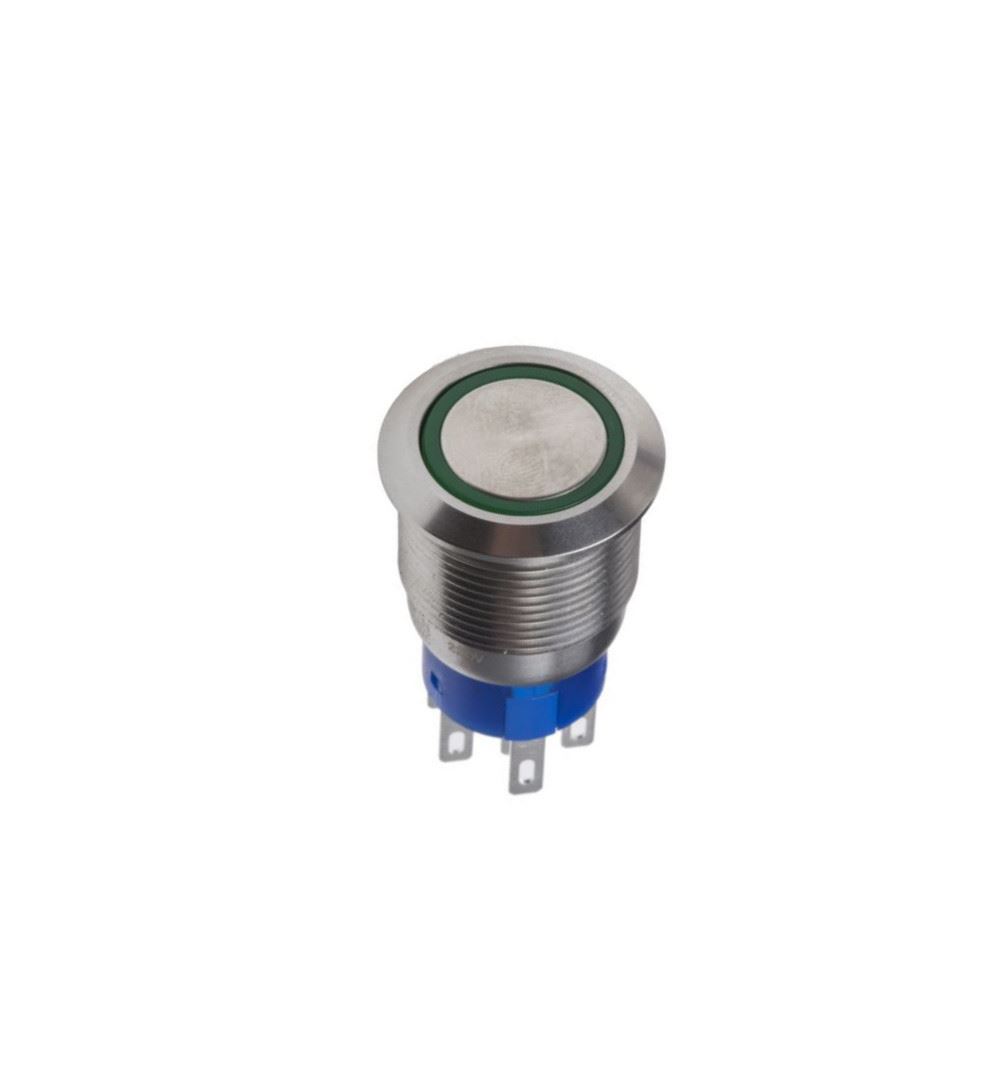 APEM AV310220000740K Pulsante Antivandalo Ø22mm acciaio inox No/Nc 30Vdc 1A led blu IP67 saldare