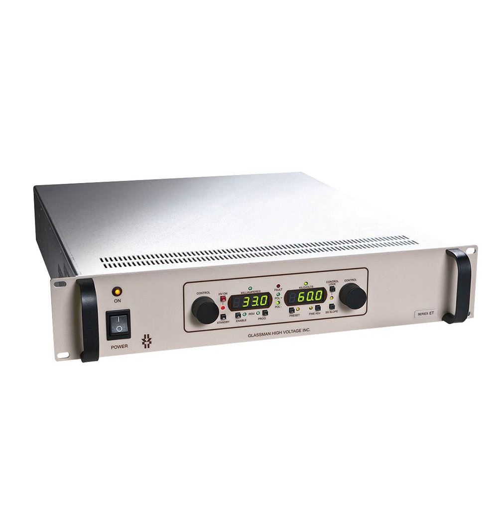 XP GLASSMAN ET1.5R1300 High Voltage Programmable Power Supply 0-1.5kVVdc 0-1300mA Reversible Polarity Other Version : Positive Polarity - ND Negative Polarity - Stored Energy HV Cable ND Option in Datasheet OEM Panel - Adjustment 0-5V - Arch Counts Arc Quench - Remote control Virtual RS232-COM