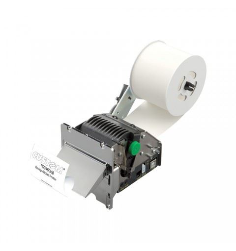 60 mm ticket dispenser with patented tear off system (without autocutter) and chrome-plated hydrocarbon-resistant nozzle that makes the printer suitable for fuel stations Special self-loading card system Possibility to mount the roll holder arm on the right or on the left Ideal for hostile environments, from -20 ° C up to + 70 ° C