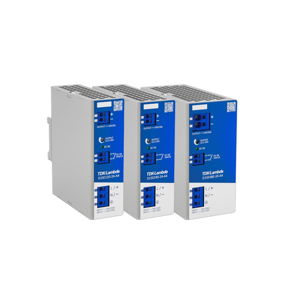 TDK-Lambda D1SE120-24-A3 Alimentatore Din Rail monofase 120W 24Vdc 130% boost power capability Il funzionamento in CA o CC consente l'utilizzo in un'ampia gamma di applicazioni. La capacità di sopportare sovratensioni del 130% aumenta la flessibilità di progettazione e consente l'ammodernamento del sistema. Efficienze fino al 92% contribuiscono a ridurre al minimo il consumo energetico e l'impatto ambientale. Un'energia di picco di spunto inferiore a 0,6 A²s impedisce l'attivazione accidentale degli interruttori automatici di ingresso. Terminali push-in per un'installazione senza attrezzi e un'elevata resistenza alle vibrazioni. Modelli dedicati con PCB rivestiti per resistere ad ambienti difficili. Un design termico sofisticato per uno spazio di installazione minimo.